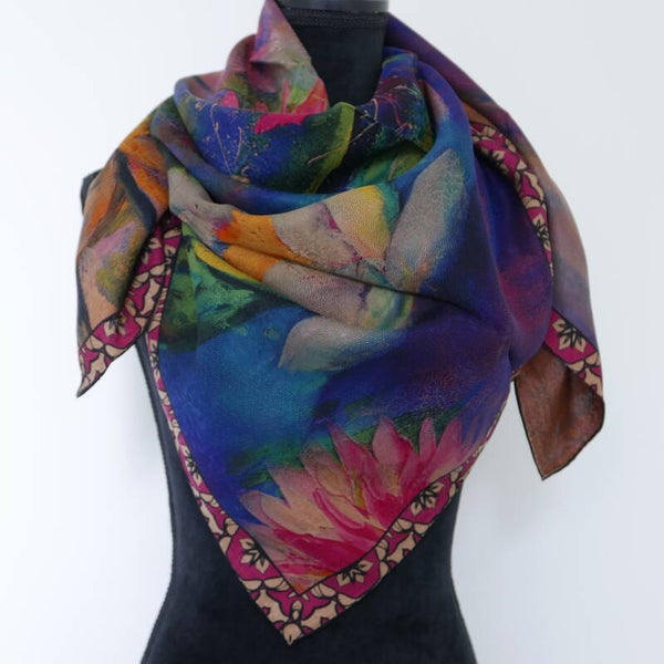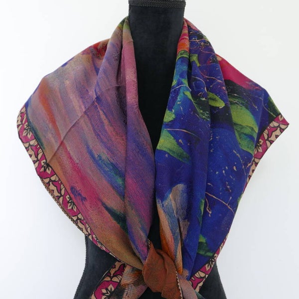 Moderne hoge kwaliteit sjaal, 100% Chinese zijde, eigen import dus heel exclusief. Comfortabel zacht en soepel, geschikt voor alle seizoenen. Heldere kleuren en een geweldige textuur. De sjaal heeft aan beide kanten verschillende kleuren en is daardoor te dragen als twee verschillende sjaals. Deze zijden sjaal is gemaakt door middel van Jacquard weeftechniek. Jacquard geweven zijde is niet alleen stevig maar ook duurzaam. Met de hand afgewerkte zoom. De afmeting is 110*110cm. Ook uitermate geschikt als cadeautje, met onze luxe verpakking geeft u een cadeau wat zeker indruk maakt.