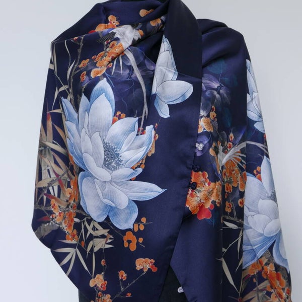 Moderne hoge kwaliteit sjaal, 100% Chinese zijde, eigen import dus heel exclusief. Comfortabel zacht en soepel, geschikt voor alle seizoenen. Heldere kleuren en een geweldige textuur. Dit is een dubbelzijdige bedrukking op zijden. De sjaal heeft aan beide kanten verschillende kleuren en is daardoor te dragen als twee verschillende sjaals. De afmeting is 55*180 cm. Ook uitermate geschikt als cadeautje, met onze luxe verpakking geeft u een cadeau wat zeker indruk maakt.