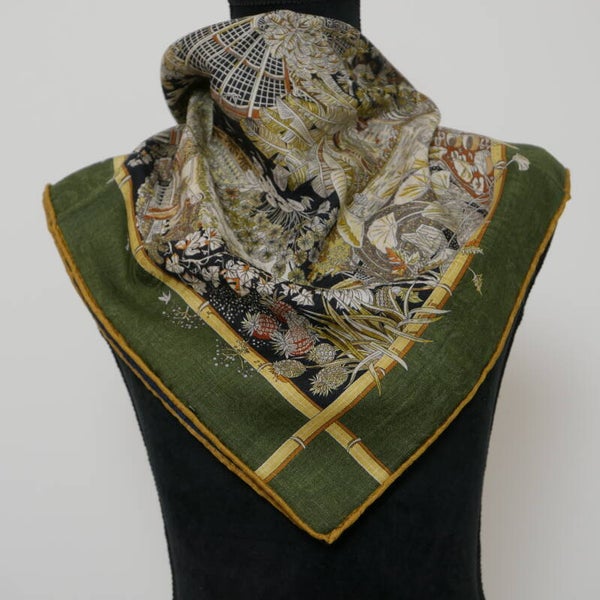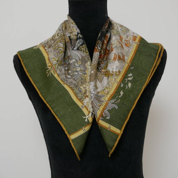 Moderne hoge kwaliteit sjaal van 20% zijde, 5% cashmere en 75% wol, eigen import dus heel exclusief. Comfortabel zacht en soepel, geschikt voor alle seizoenen. Heldere kleuren en een geweldige textuur. Dit is een dubbelzijdige bedrukking op zijden. Met de hand afgewerkte zoom. De afmeting is 63*63cm. Ook uitermate geschikt als cadeautje, met onze luxe verpakking geeft u een cadeau wat zeker indruk maakt.