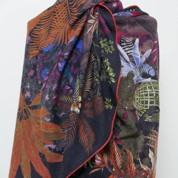 Moderne hoge kwaliteit sjaal van 23% zijde en 77% wol, eigen import dus heel exclusief. Comfortabel zacht en soepel, geschikt voor alle seizoenen. Heldere kleuren en een geweldige textuur. Dit is een enkelzijdige bedrukking op zijden. Met de hand afgewerkte zoom. De afmeting is 135*135cm. Ook uitermate geschikt als cadeautje, met onze luxe verpakking geeft u een cadeau wat zeker indruk maakt.
