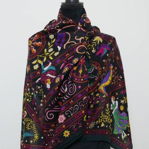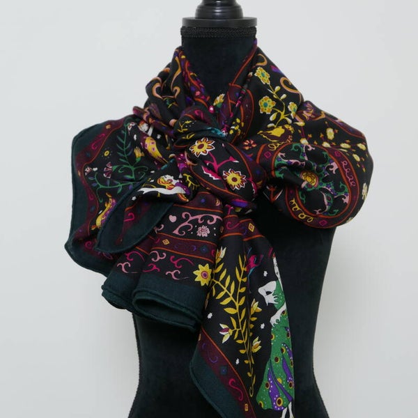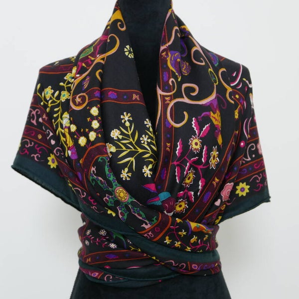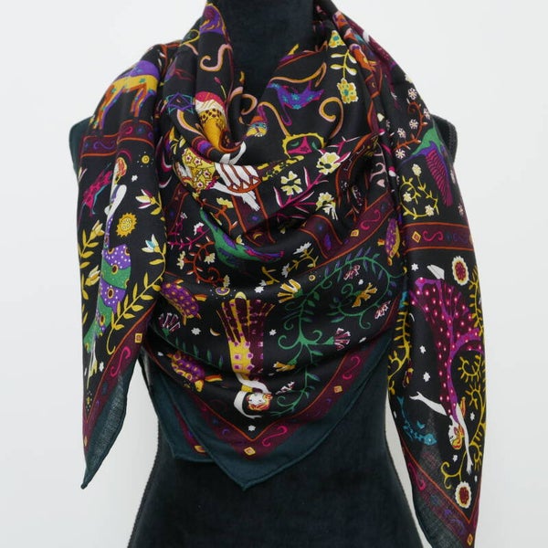 Moderne hoge kwaliteit sjaal van 30% zijde en 70% cashmere, eigen import dus heel exclusief. Comfortabel zacht en soepel, geschikt voor alle seizoenen. Heldere kleuren en een geweldige textuur. Dit is een enkelzijdige bedrukking op zijden. Met de hand afgewerkte zoom. De afmeting is 135*135cm. Ook uitermate geschikt als cadeautje, met onze luxe verpakking geeft u een cadeau wat zeker indruk maakt.