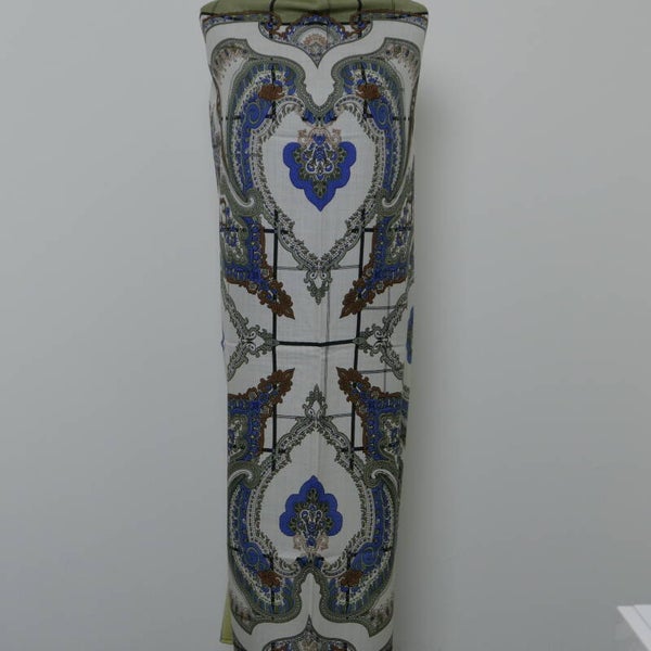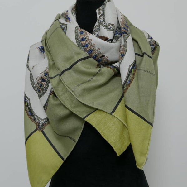 Moderne hoge kwaliteit sjaal van 30% zijde en 70% wol, eigen import dus heel exclusief. Comfortabel zacht en soepel, geschikt voor alle seizoenen. Heldere kleuren en een geweldige textuur. Dit is een enkelzijdige bedrukking op zijden. Met de hand afgewerkte zoom. De afmeting is 135*135cm. Ook uitermate geschikt als cadeautje, met onze luxe verpakking geeft u een cadeau wat zeker indruk maakt.