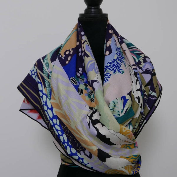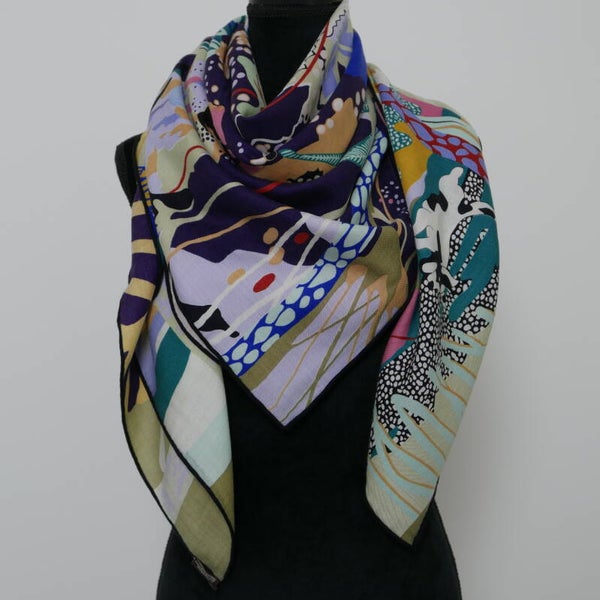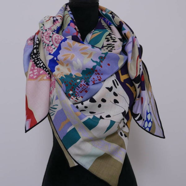 Moderne hoge kwaliteit sjaal van 30% zijde en 70% cashmere, eigen import dus heel exclusief. Comfortabel zacht en soepel, geschikt voor alle seizoenen. Heldere kleuren en een geweldige textuur. Dit is een enkelzijdige bedrukking op zijden. Met de hand afgewerkte zoom. De afmeting is 135*135cm. Ook uitermate geschikt als cadeautje, met onze luxe verpakking geeft u een cadeau wat zeker indruk maakt.