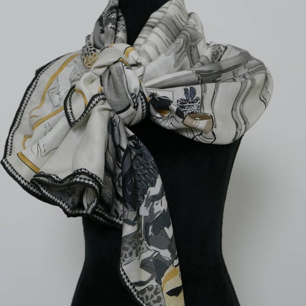 Moderne hoge kwaliteit sjaal van 30% zijde en 70% wol, eigen import dus heel exclusief. Comfortabel zacht en soepel, geschikt voor alle seizoenen. Heldere kleuren en een geweldige textuur. Dit is een enkelzijdige bedrukking op zijden. Met de hand afgewerkte zoom. De afmeting is 135*135cm. Ook uitermate geschikt als cadeautje, met onze luxe verpakking geeft u een cadeau wat zeker indruk maakt.