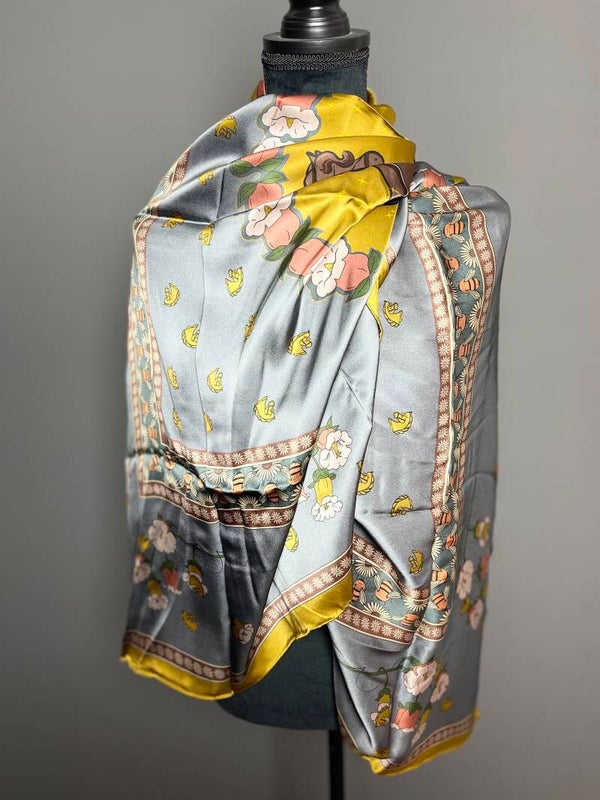 Moderne hoge kwaliteit sjaal, 100% Chinese zijde, eigen import dus heel exclusief. Comfortabel zacht en soepel, geschikt voor alle seizoenen. Heldere kleuren en een geweldige textuur. Dit is een 100% 14 momme moerbei zijden sjaal. De zijden sjaal voelt bijzonder goed aan. Het is erg comfortabel om te dragen. De randen van de zijden sjaal zijn met de hand gezoomd. De afmeting is 135 * 135 cm. Ook uitermate geschikt als cadeautje. Met onze luxe verpakking geeft u een cadeau wat zeker indruk maakt.