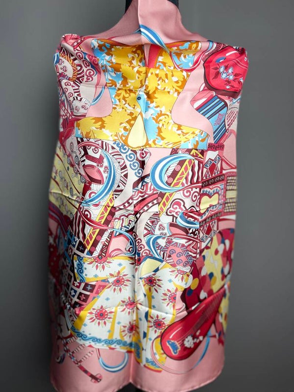 Moderne hoge kwaliteit sjaal, 100% Chinese zijde, eigen import dus heel exclusief. Comfortabel zacht en soepel, geschikt voor alle seizoenen. Heldere kleuren en een geweldige textuur. Dit is een 100% 16 momme zware, zandgewassen moerbeizijde-sjaal van twill en dubbelzijdige bedrukking op zijden. De sjaal heeft aan beide kanten verschillende kleuren en is daardoor te dragen als twee verschillende sjaals. Met de hand afgewerkte zoom. De afmeting is 85*85cm. Ook uitermate geschikt als cadeautje, met onze luxe verpakking geeft u een cadeau wat zeker indruk maakt.