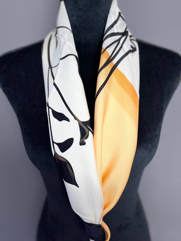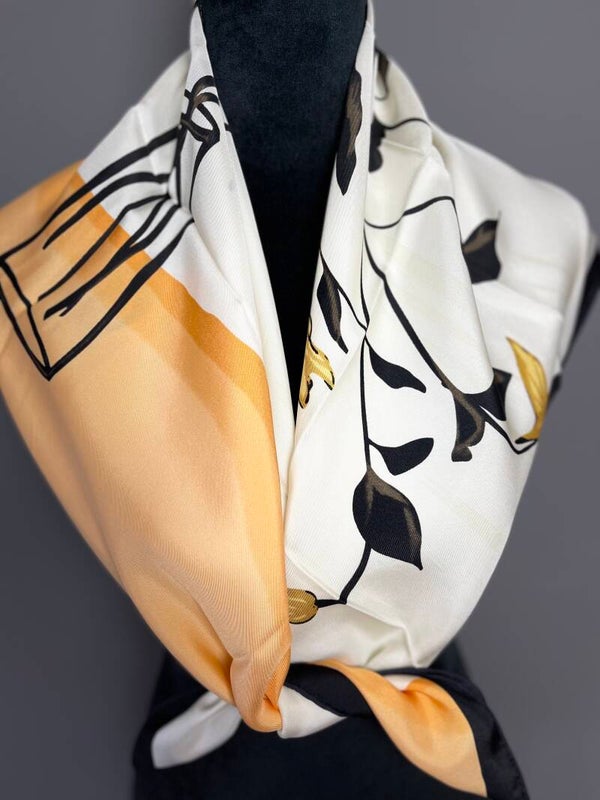 Moderne hoge kwaliteit sjaal, 100% Chinese zijde, eigen import dus heel exclusief. Comfortabel zacht en soepel, geschikt voor alle seizoenen. Heldere kleuren en een geweldige textuur. Dit is een 100% 14 momme moerbeizijde-sjaal. De sjaal is schuin geweven en heeft daardoor een matte twill textuur. De randen zijn met de hand gezoomd. De afmeting is 85*85 cm. Heldere kleuren en een geweldige textuur. Ook uitermate geschikt als cadeautje, met onze luxe verpakking geeft u een cadeau wat zeker indruk maakt.