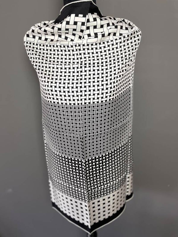 Moderne hoge kwaliteit sjaal, 100% Chinese zijde, eigen import dus heel exclusief. Comfortabel zacht en soepel, geschikt voor alle seizoenen. Heldere kleuren en een geweldige textuur. Dit is een 100% 14 momme moerbeizijde-sjaal. De sjaal is schuin geweven en heeft daardoor een matte twill textuur. De randen zijn met de hand gezoomd. De afmeting is 85*85 cm. Heldere kleuren en een geweldige textuur. Ook uitermate geschikt als cadeautje, met onze luxe verpakking geeft u een cadeau wat zeker indruk maakt.