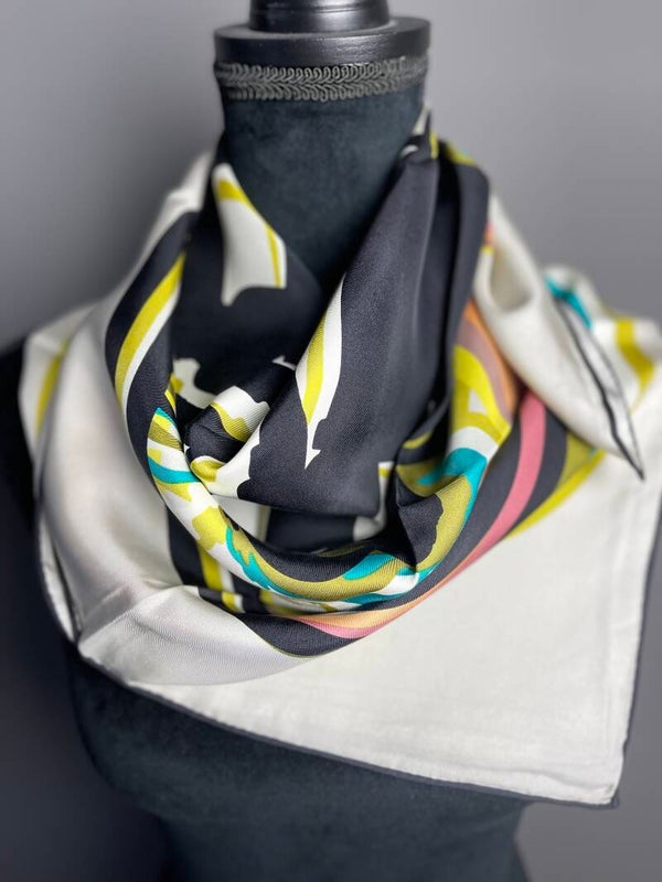 Moderne hoge kwaliteit sjaal, 100% Chinese zijde, eigen import dus heel exclusief. Comfortabel zacht en soepel, geschikt voor alle seizoenen. Heldere kleuren en een geweldige textuur. Dit is een 100% 14 momme moerbeizijde-sjaal. De sjaal is schuin geweven en heeft daardoor een matte twill textuur. De randen zijn met de hand gezoomd. De afmeting is 85*85 cm. Heldere kleuren en een geweldige textuur. Ook uitermate geschikt als cadeautje, met onze luxe verpakking geeft u een cadeau wat zeker indruk maakt.