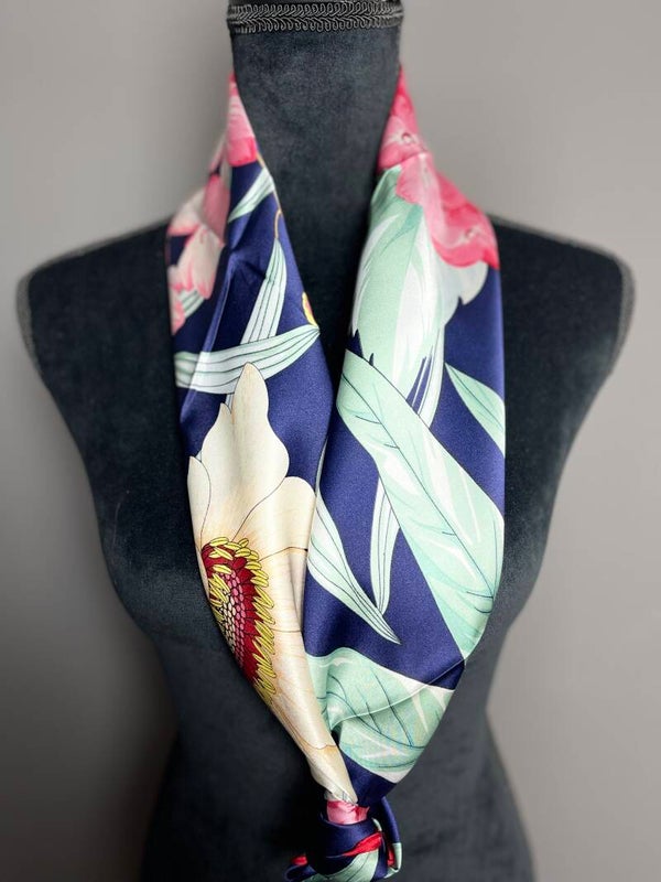 Moderne hoge kwaliteit sjaal, 100% Chinese zijde, eigen import dus heel exclusief. Comfortabel zacht en soepel, geschikt voor alle seizoenen. Heldere kleuren en een geweldige textuur. Dit is een 100% 14 momme moerbeizijden sjaal. De zijden sjaal voelt bijzonder goed aan. Het is erg comfortabel om te dragen. De randen van de zijden sjaal zijn met de hand gezoomd. De afmeting is 88 * 88 cm. Ook uitermate geschikt als cadeautje. Met onze luxe verpakking geeft u een cadeau wat zeker indruk maakt.