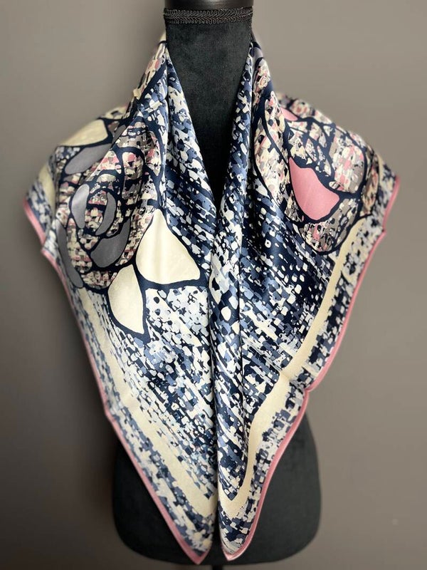 Moderne hoge kwaliteit sjaal, 100% Chinese zijde, eigen import dus heel exclusief. Comfortabel zacht en soepel, geschikt voor alle seizoenen. Heldere kleuren en een geweldige textuur. Dit is een 100% 14 momme moerbeizijden sjaal. De zijden sjaal voelt bijzonder goed aan. Het is erg comfortabel om te dragen. De randen van de zijden sjaal zijn met de hand gezoomd. De afmeting is 88 * 88 cm. Ook uitermate geschikt als cadeautje. Met onze luxe verpakking geeft u een cadeau wat zeker indruk maakt.