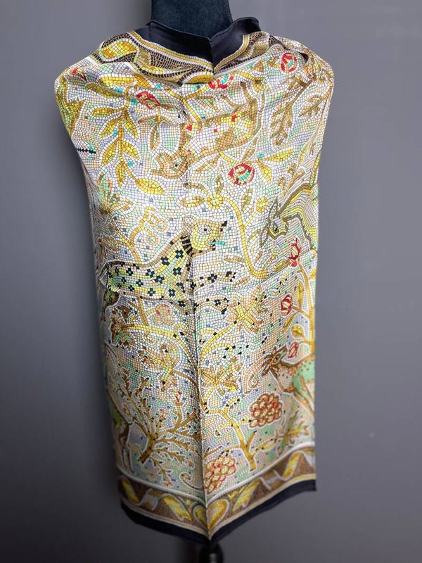 Moderne hoge kwaliteit sjaal, 100% Chinese zijde, eigen import dus heel exclusief. Comfortabel zacht en soepel, geschikt voor alle seizoenen. Heldere kleuren en een geweldige textuur. Dit is een 100% 14 momme moerbeizijde-sjaal. De sjaal is schuin geweven en heeft daardoor een matte twill textuur. De randen zijn met de hand gezoomd. De afmeting is 85*85 cm. Heldere kleuren en een geweldige textuur. Ook uitermate geschikt als cadeautje, met onze luxe verpakking geeft u een cadeau wat zeker indruk maakt.