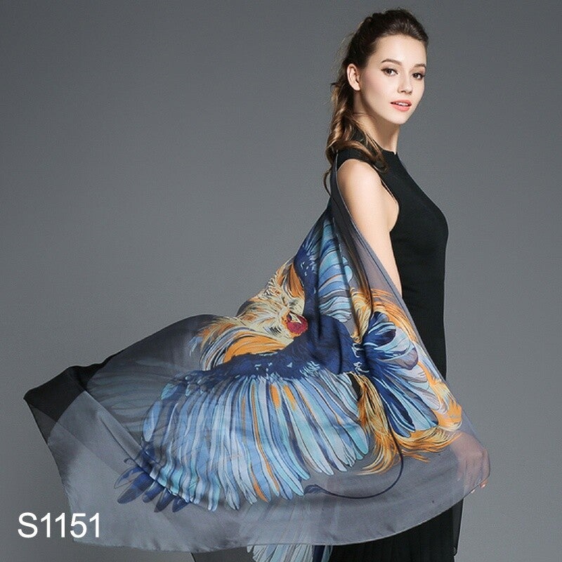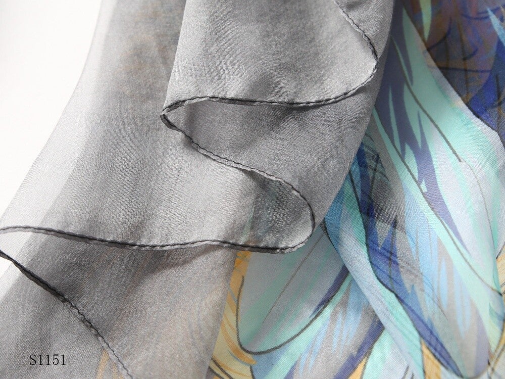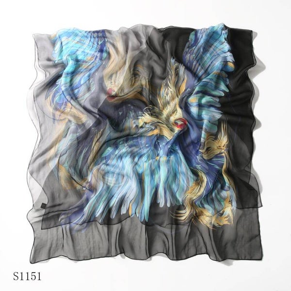 Moderne hoge kwaliteit sjaal, 100% Chinese zijde, eigen import dus heel exclusief.Comfortabel zacht en soepel, geschikt voor alle seizoenen. Heldere kleuren en een geweldige textuur. Dit is een langwerpige sjaal van moerbeizijde van 110*180 cm. De hoofdkleur is blauw met zwart en geel. Ook uitermate geschikt als cadeautje, met onze luxe verpakking geeft u een cadeau wat zker indruk maakt.