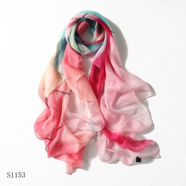 Moderne hoge kwaliteit sjaal, 100% Chinese zijde, eigen import dus heel exclusief.Comfortabel zacht en soepel, geschikt voor alle seizoenen. Heldere kleuren en een geweldige textuur. Dit is een langwerpige sjaal van moerbeizijde van 110*180 cm. De hoofdkleur is roze met blauw en rood. Ook uitermate geschikt als cadeautje, met onze luxe verpakking geeft u een cadeau wat zker indruk maakt.
