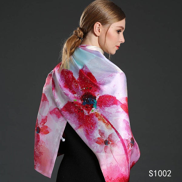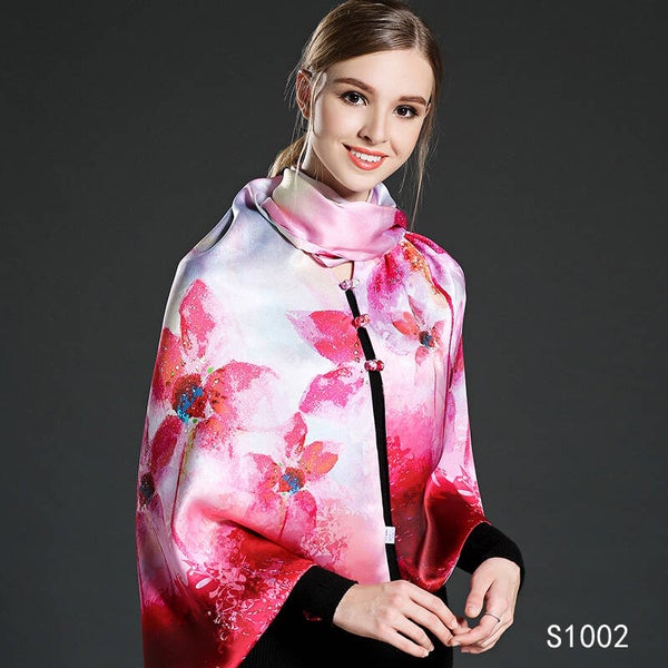 Moderne hoge kwaliteit sjaal, 100% Chinese zijde, eigen import dus heel exclusief. Comfortabel zacht en soepel, geschikt voor alle seizoenen. Heldere kleuren en een geweldige textuur. Dit is een dubbelzijdige bedrukking op zijden. De sjaal heeft aan beide kanten verschillende kleuren en is daardoor te dragen als twee verschillende sjaals. Ook uitermate geschikt als cadeautje, met onze luxe verpakking geeft u een cadeau wat zeker indruk maakt.