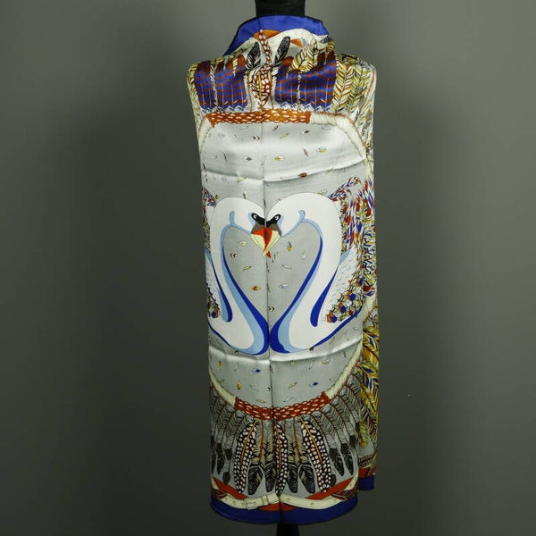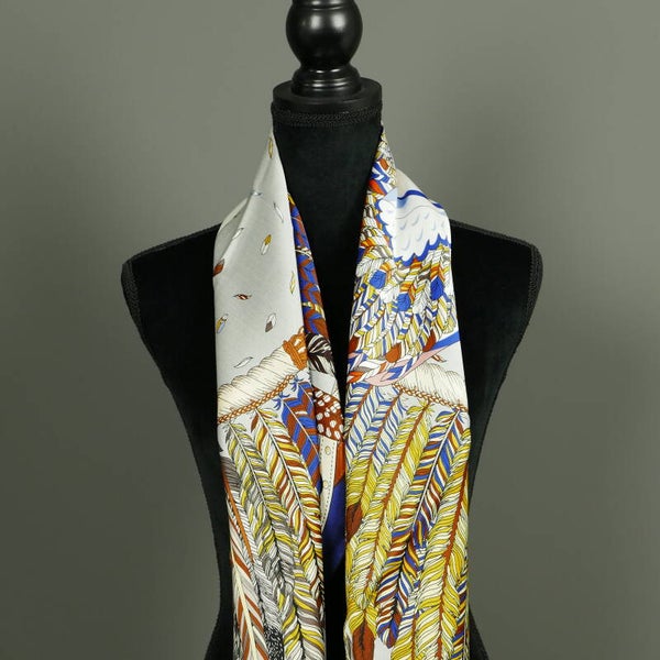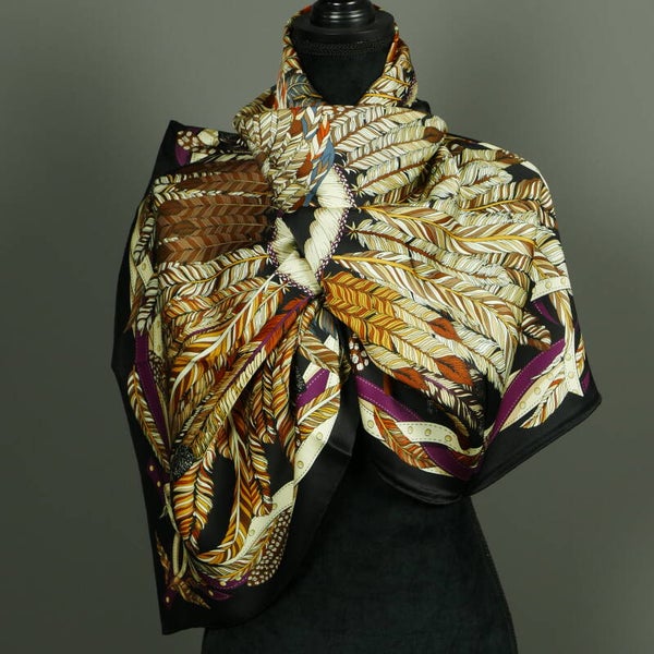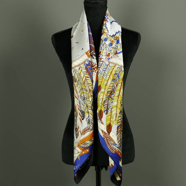 Moderne hoge kwaliteit sjaal, 100% Chinese zijde, eigen import dus heel exclusief. Comfortabel zacht en soepel, geschikt voor alle seizoenen. Heldere kleuren en een geweldige textuur. Dit is een dubbelzijdige bedrukking op zijden. De sjaal heeft aan beide kanten verschillende kleuren en is daardoor te dragen als twee verschillende sjaals. Met de hand afgewerkte zoom. De afmeting is 110*110cm. Ook uitermate geschikt als cadeautje, met onze luxe verpakking geeft u een cadeau wat zeker indruk maakt.