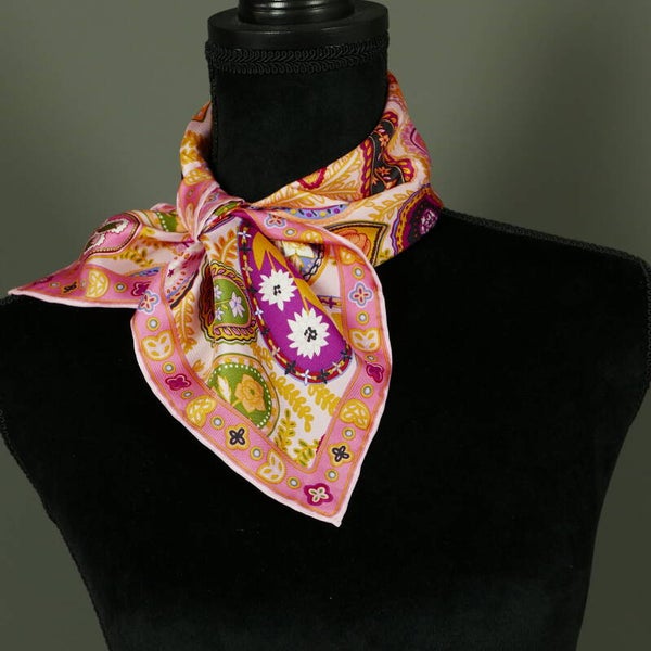 Moderne hoge kwaliteit sjaal, 100% Chinese zijden twill sjaal, eigen import dus heel exclusief. Comfortabel zacht en soepel, geschikt voor alle seizoenen. Heldere kleuren en een geweldige textuur. Dit is een vierkante sjaal van zijden twill van 50 * 50 cm met de hand afgewerkte zoom. Ook uitermate geschikt als cadeautje, met onze luxe verpakking geeft u een cadeau wat zeker indruk maakt.