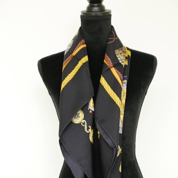 Moderne hoge kwaliteit sjaal, 100% Chinese zijde, eigen import dus heel exclusief. Comfortabel zacht en soepel, geschikt voor alle seizoenen. Heldere kleuren en een geweldige textuur. Deze sjaal heeft een zwarte achtergrond met goudekleurige elementen. De sjaal is schuin geweven en heeft daardoor een matte twill textuur. De randen zijn met de hand gezoomd. De afmeting is 90*90 cm. Heldere kleuren en een geweldige textuur. Ook uitermate geschikt als cadeautje, met onze luxe verpakking geeft u een cadeau wat zeker indruk maakt.